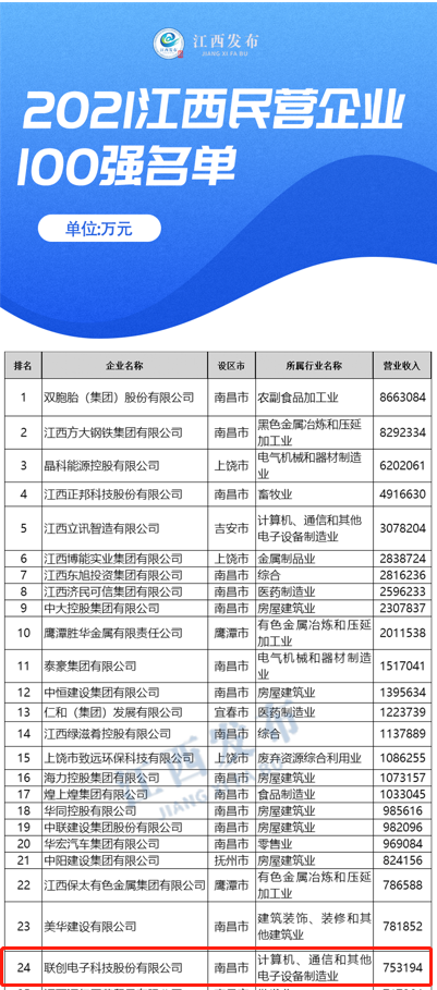 12月13日,2021江西民营企业100强、2021江西制造业民营企业100强、2021江西服务业民营企业20强榜单发布,MG不朽情缘电子以强大的综合实力和稳健的发展态势,连续第九年荣登榜单。其中,在江西民营企业100强中位列第24位,较前一年位次前进3位,在江西制造业民营企业100强中位列第13位。